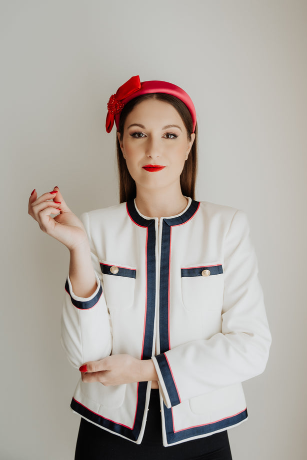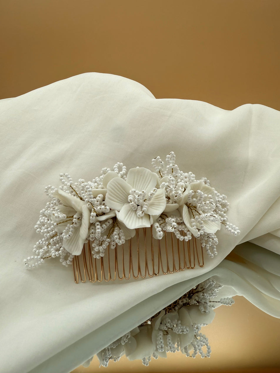 Um bordado à mão que revela o tempo, o detalhe e o amor pelo que é eterno. Com pérolas, cristais e missangas em tons pérola e dourado suave, a Catarina é uma peça que nasce para marcar presença , sem excessos, mas com verdade. É brilho que não impõe, apenas revela. É força serena. Feminilidade com alma. Para mulheres que sabem que a beleza está nos detalhes… e que os detalhes nunca são pequenos.