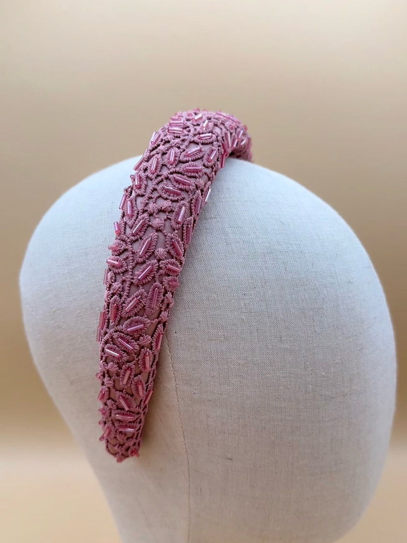 Num tom rosa profundo, trabalhado com textura e detalhe minucioso, traz uma elegância serena que acompanha sem impor.